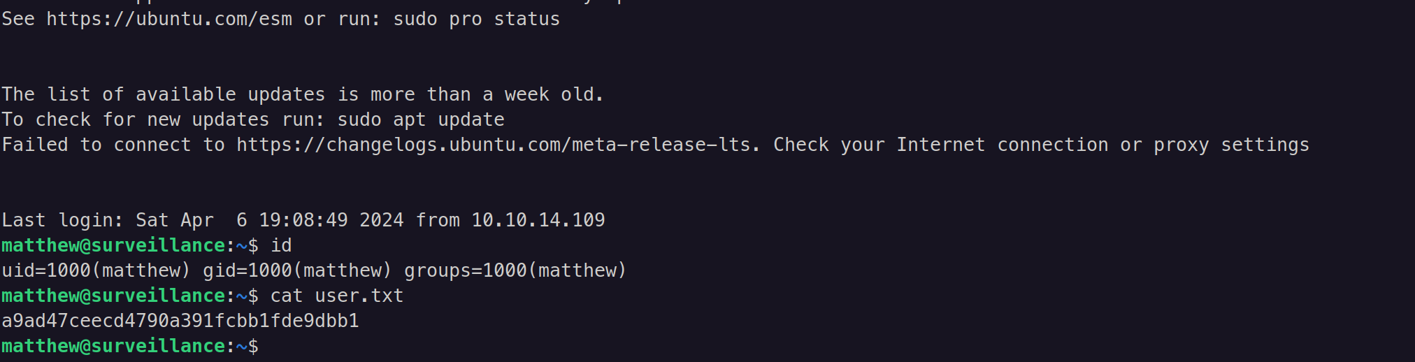 With that, I was able to get the user flag - a9ad47ceecd4790a391fcbb1fde9dbb1