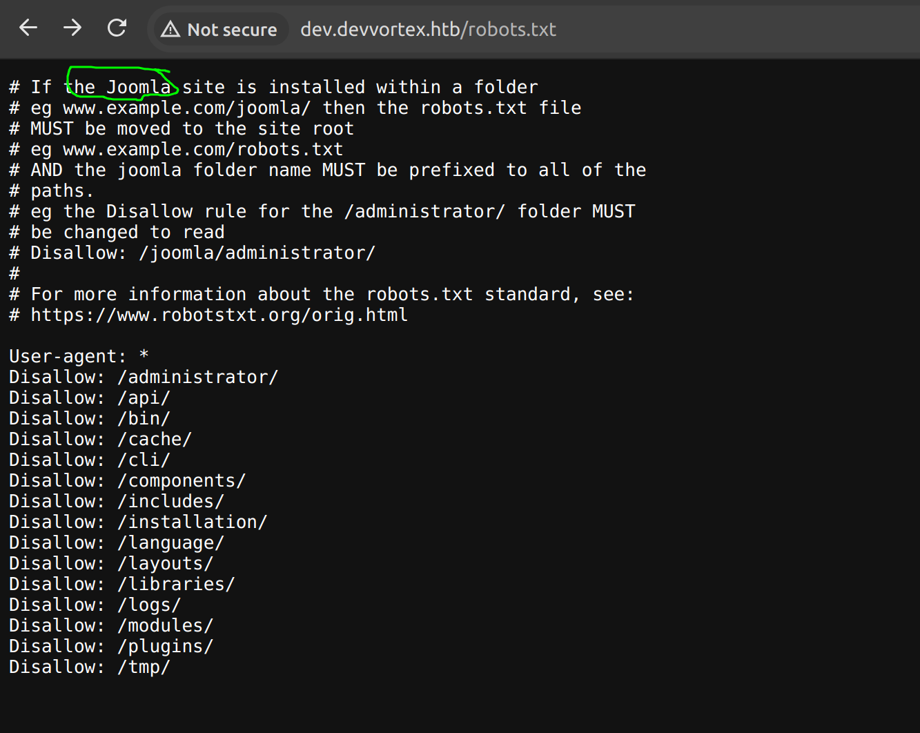 Devvortex is an easy-difficulty Linux machine that features a Joomla CMS that is vulnerable to information disclosure. Accessing the service’s configuration file reveals plaintext credentials that lead to Administrative access to the Joomla instance. With administrative access, the Joomla template is modified to include malicious PHP code and gain a shell. After gaining a shell and enumerating the database contents, hashed credentials are obtained, which are cracked and lead to SSH access to the machine. Post-exploitation enumeration reveals that the user is allowed to run apport-cli as root, which is leveraged to obtain a root shell.