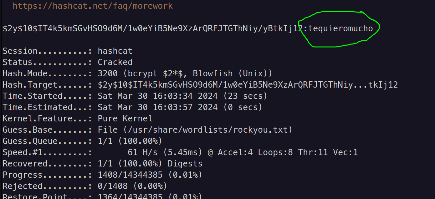 The password is - tequieromucho