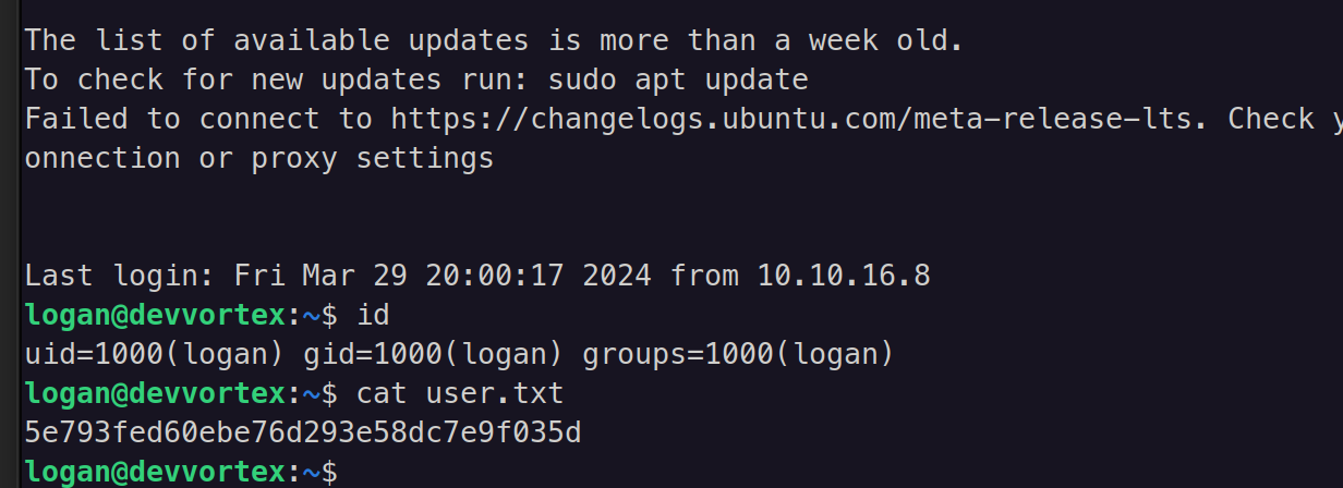Then, I used hashcat to crack the hash of logan.