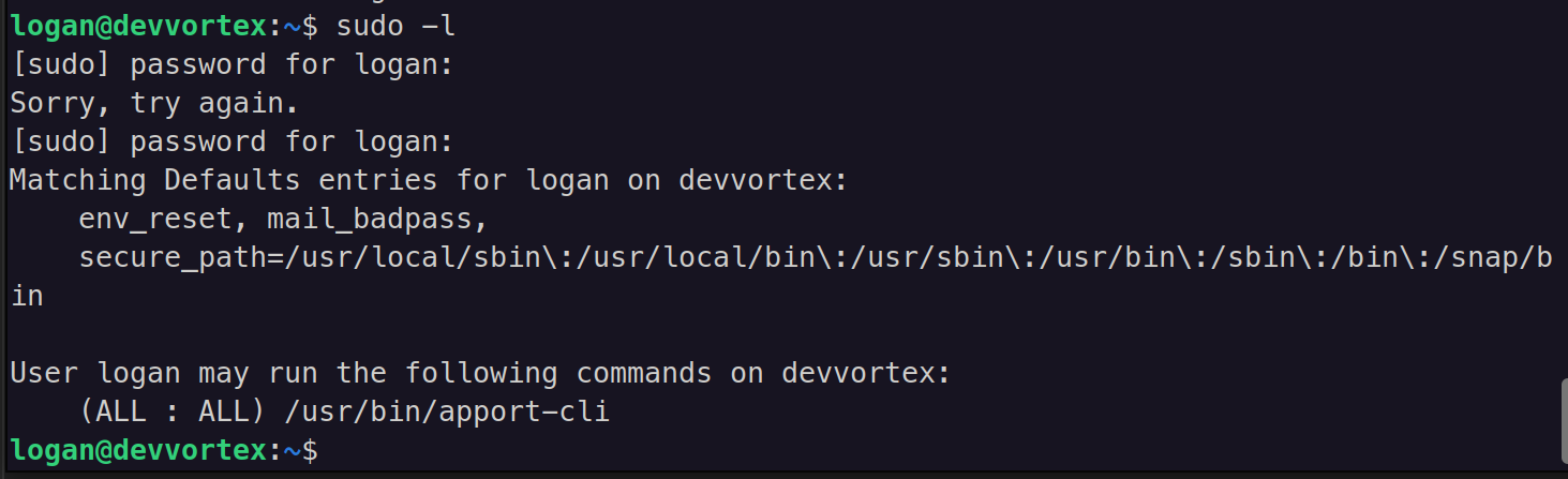 The user logan can run apport-cli with sudo